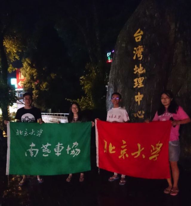 本来从鹿港小镇沿着海边往南就可以,但由于我们要去日月潭,所以我们折向东行。原计划骑到日月潭,可是到了下午一进山,就下起了大雨。等雨的时候遇到了一位经常环岛且自己开骑行客栈的老板,他热情邀请我们去他在埔里的旅店住。所以我们就跟着他冒雨骑到了埔里。上埔里的公路路况很好,而且坡度很缓,不知不觉就上到埔里镇。晚上老板带我们去看了台湾地理中心碑,然后上到台湾公路最高点——海拔 3275 米的武岭。还让我们下次挑战一下骑到武岭。台湾中部的阿里山、玉山山脉海拔很高,这样山下的暖湿空气沿着山爬升之后,温度变冷,饱和点下降,就容易下雨,不下雨也很容易起雾,所以进山一定要早去早下山。