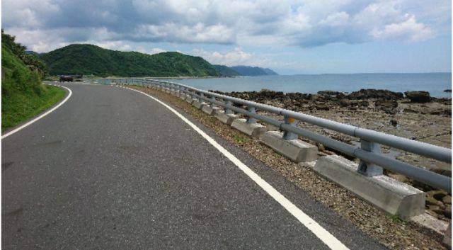 到了寿卡之后,就从南回公路开始下坡,40 公里时速一直下了 20 分钟,完全不用蹬,一直到达仁乡。但是必须要捏刹车,因为大货车,大卡车都特别多,需要特别注意安全。这时候就会发现,虽然旭海上到寿卡这段很辛苦,但是如果顺时针骑行,从达仁乡上来的话恐怕会吐血,暗自庆幸没有顺时针骑。接下来就一直沿着太平洋北上,一直都是在海边行走。这一段的车虽然比较多,但是路比较宽,也有自行车道。从达仁到知本温泉大约 50 公里,需要上下坡几次,而且坡比较高。但是经过旭海到寿卡这段上坡,这几个起伏也就不算啥了。晚上 8 点半到知本温泉,泡过温泉还是很舒服的,价格也不贵。