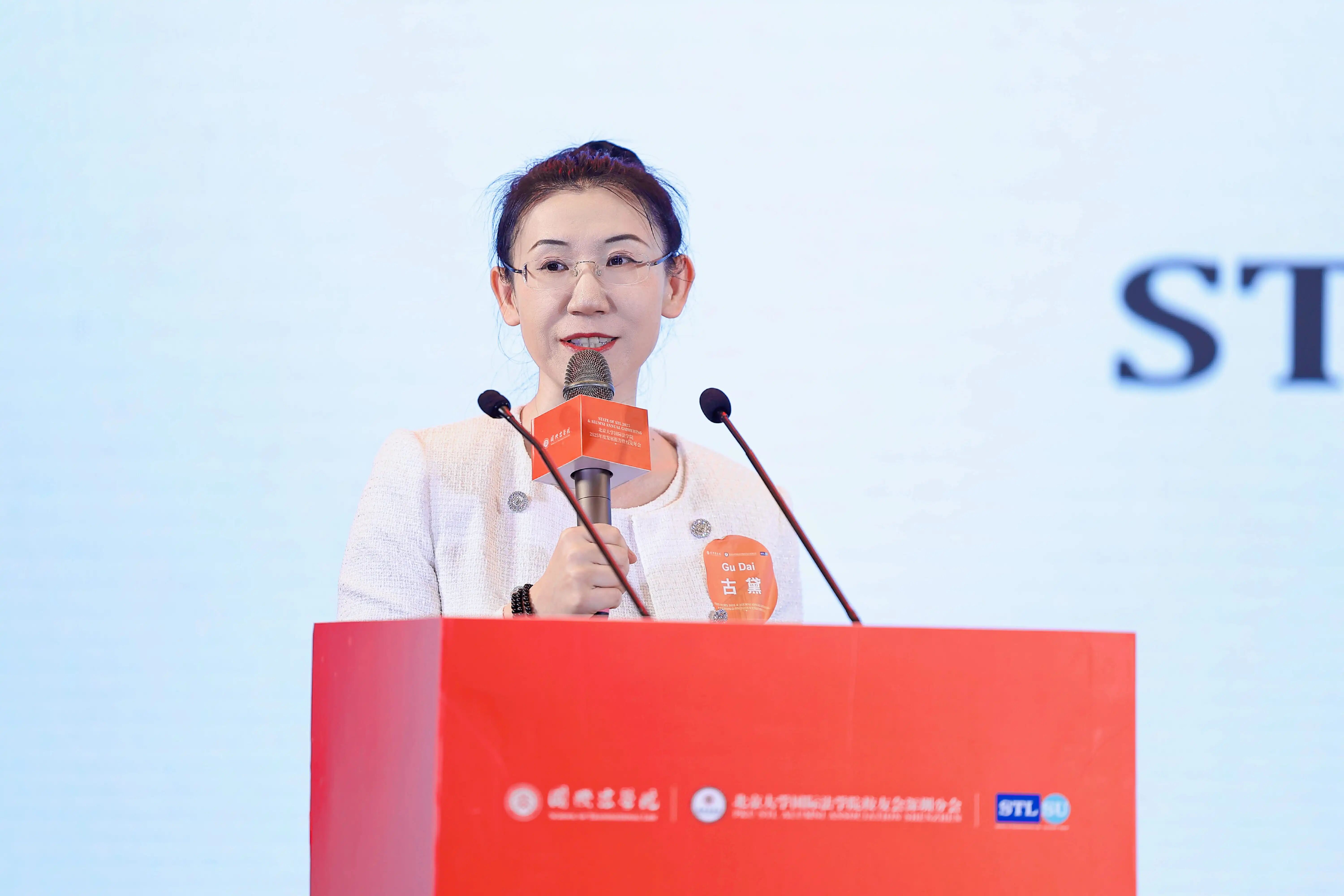 STL校友会会长、2008级校友古黛汇报了2025年校友总会及各分会的工作。全年共举办38场活动,其中总会10场,各分会28场,形成了“专业交流与生活联谊并重”的活跃生态。与深圳国际仲裁院、清华大学校友会等合办的“法商对话”“北大清华深国仲青年交流”等品牌活动,有效促进了跨院校、跨行业的校友网络建设。