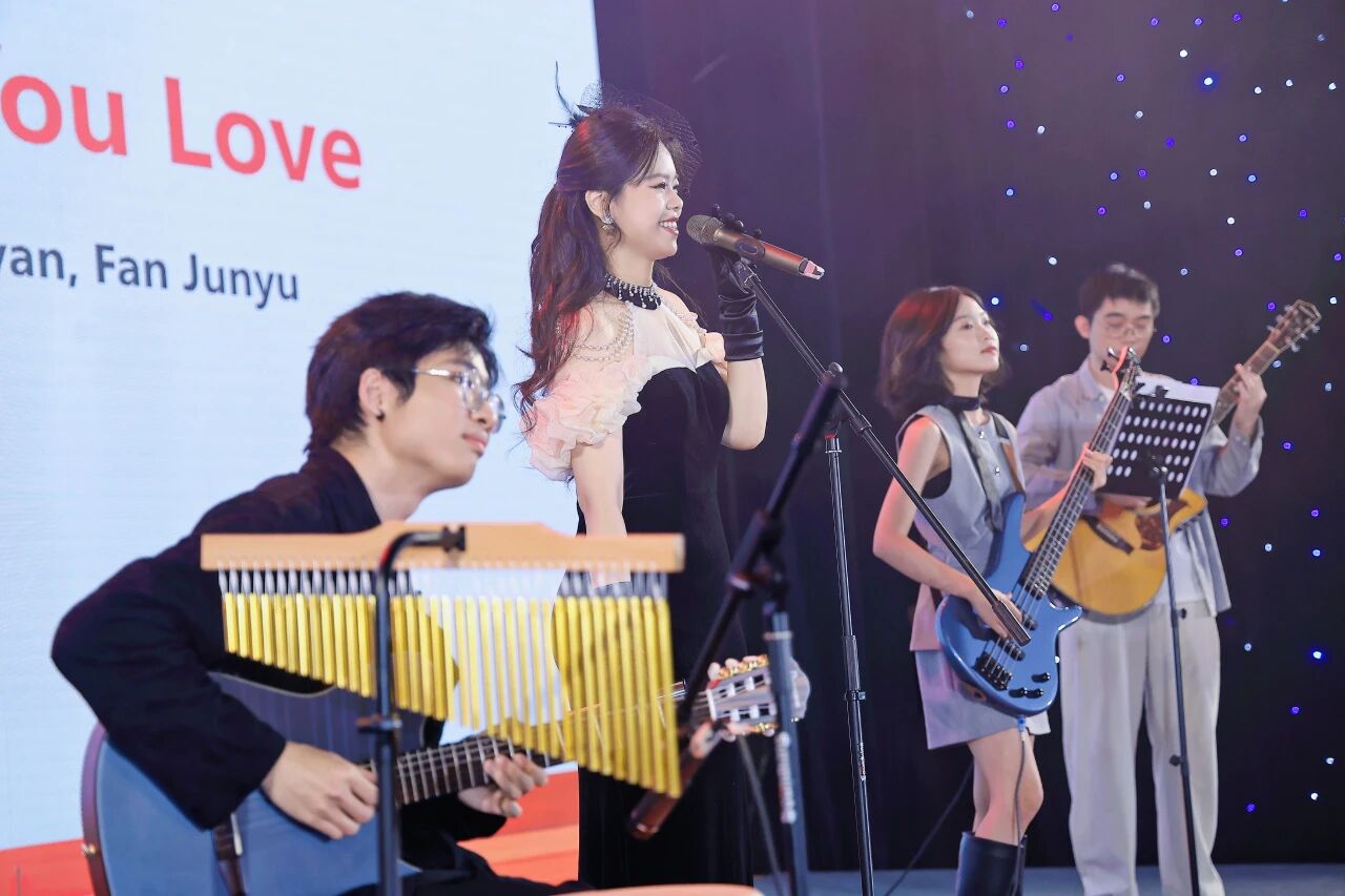 最后,滕菲菲、杨丰绮、黄靖雯、葛俊炎、范峻宇带来乐队表演,以《Fly Me to the Moon》和《I Wish You Love》两首经典曲目,用悠扬旋律营造出浪漫温馨的氛围,引发全场共鸣。